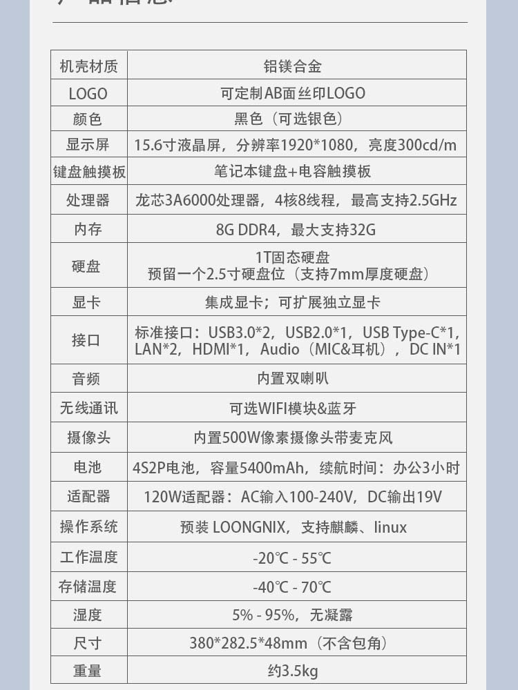 * 表示必填采購:15.6寸全國產(chǎn)化龍芯3A6000工業(yè)三防加固筆記本電腦(護盾X15L)